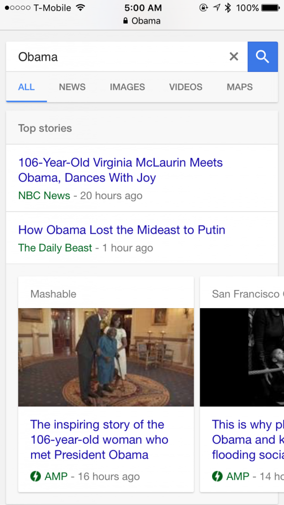 And only AMP results are showing in that news carousel, meaning those news sites that don’t have an AMP version available could miss out on significant mobile traffic as a result. If all news results switch to AMP for all mobile users, not just those on a slower connection, it could result in the loss of nearly all mobile news related traffic.