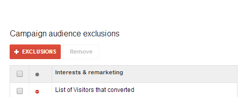 If you are in lead gen, you want to exclude people who have been to your thank you page and are in your nurturing funnel.In ecommerce, you may want to target your converted purchasers with an accessory product or offer seasonal discounts down the road, however, for some period of time after conversion, most retailers should probably leave the customer alone for a little while. The audience you exclude from your remarketing will vary by business but almost all businesses have some visitors that don’t belong in your remarketing audience. The campaign exclusions section can be found on your display tab, Interests and remarketing sub tab, down at the bottom left.