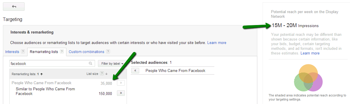 Another gotcha is “Similar Users” audiences. These are audiences Google creates that look like your remarketing audiences. The people however have not been to your site; in fact when using these targets Google automatically excludes people who have been to your site from that ad group. Because they live in the remarketing audiences section of Google, many people mistakenly include them in their remarketing campaigns.