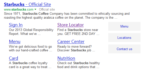 Bing is running another test in their search results which highlights what they view as important links – such as Login, Contact Us & Menu pages. They appear to the right of the site links for the organic search listing, with a shaded box surrounding each one.