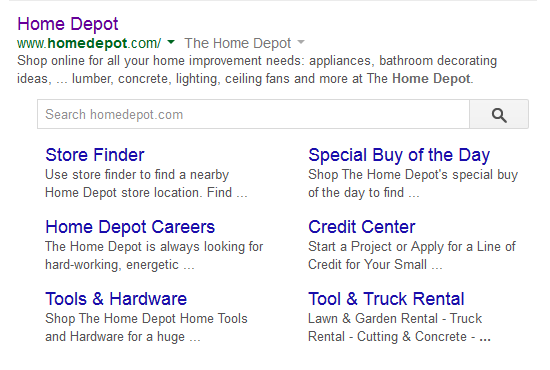 What is interesting though, is Google also displays the site search box for “Home Depot” as well, but those searches are actually routed through Home Depot’s site search engine with schema markup, so they display the search results right on their own site.
