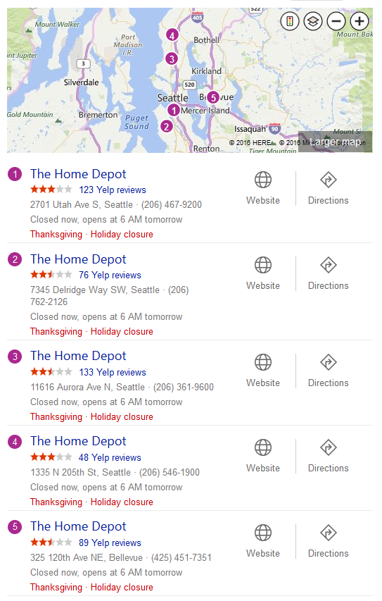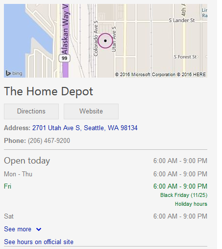 Bing is finally showing holiday hours in their local pack and local business knowledge panel results. They began showing up yesterday to show holiday hours and closures for Thanksgiving Day. They are also detailing special hours for events such as Black Friday.