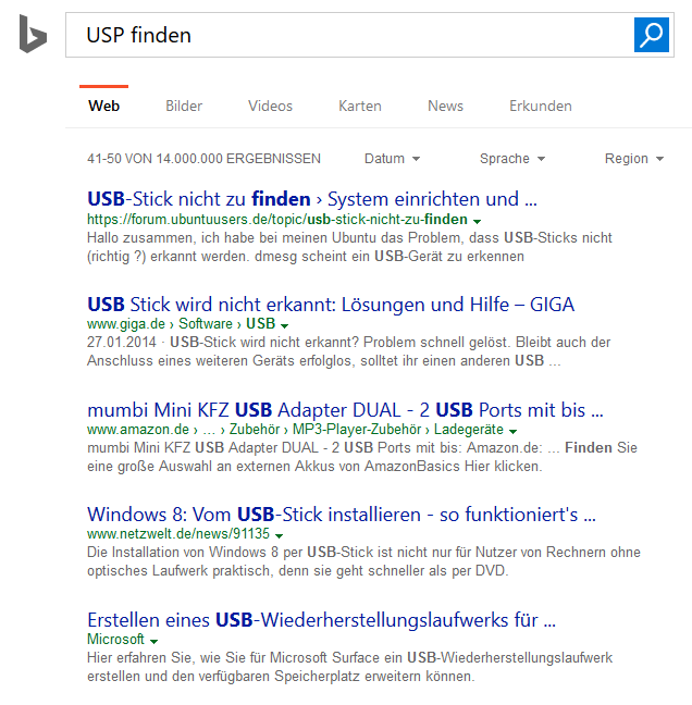 Bing is testing out something interesting – instead of showing the URL of the site, which is pretty standard across search engines, they are showing the company/brand name only.