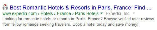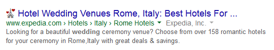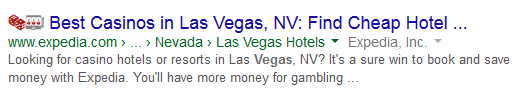 When emojis were first spotted in the Google desktop search results, we knew it wouldn’t be long before someone would be testing them out. And Expedia seems to be the first one people noticed who is testing this in live search results.