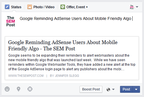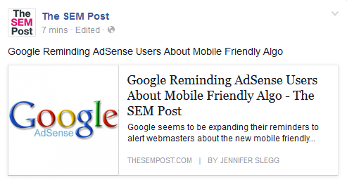 Now that it is posted, you can see it automatically selected the thumbnail image from the page. And going into edit does not give a new option to change or add a photo.