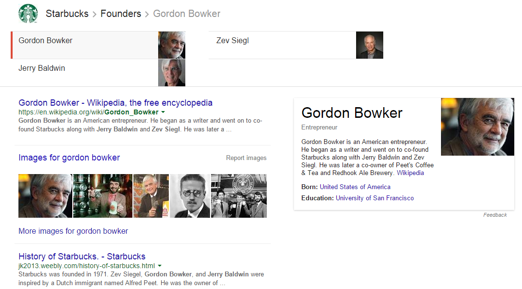 When you click on one of their names, you get a search result page for that person, along with their personal knowledge panel.