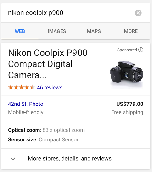 Google first began testing these hybrid knowledge panels that contained data as in a regular knowledge panel, but with the addition of sellers as a sponsored Product Listing Ad unit in the sidebar, back in July. And since Google likes to keep desktop and mobile similar, it isn’t surprising they have moved this type of listing to the mobile search results.