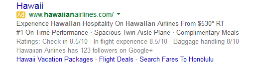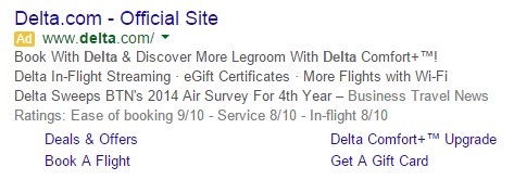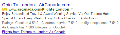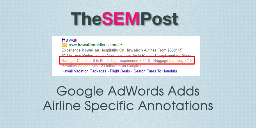 We are all used to seeing consumer ratings in Google AdWords and Bing Ads, where the ad can highlight consumer ratings they have received in traditional areas such as customer service, return policy and delivery. They seem to have expanded this to the airline industry now, with specific ratings that are very tailored to the airline industry.