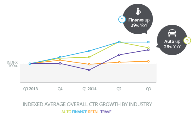 As they look at CTR rates across industry, they discovered that financial industries saw a 39% increase in CTR YoY while the auto industry showed a 29% increase.