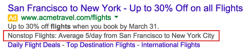 Google is pulling this snippet of information from the landing page website, and advertisers do not need to add any additional code to their sites in order to display these new snippets. They are eligible to be shown on Google.com for “Search Network with Display Select” or “Search Network only” campaigns.