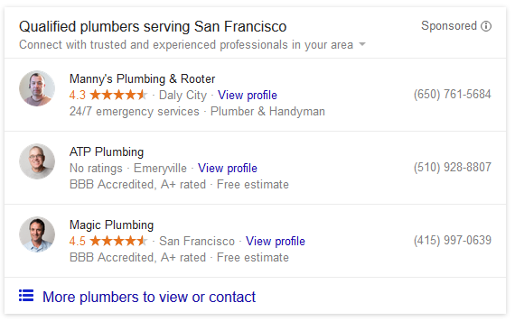 They allow you to contact up to 3 qualified home service professionals directly from the search results page. Traditional ads point to websites, but when your sink is clogged or you are locked out of your car, you might not have time to jump from page to page to book a service.