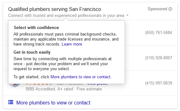 All professionals who appear in home service ads go through a screening process, and they can’t pay to be ranked higher in the ad units.