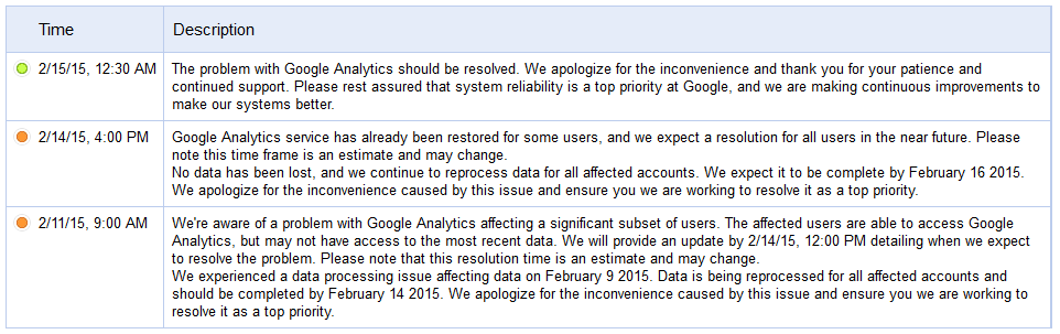 However, there seemed to be some problems the Google Analytics was having restoring the data within this time frame. It wasn’t actually until Sunday the 14th that the data was completely restored all users. The seemingly related outage affecting search query data in Google Webmaster Tools was also fixed.