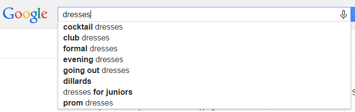 It also works for even single word keywords, such as “dresses”.