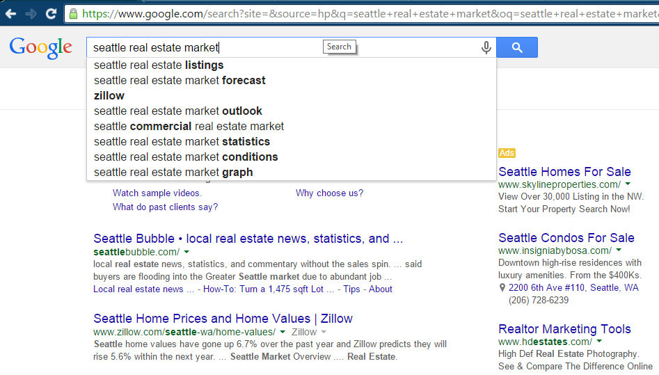 Rand Fishkin of Moz was the first to notice the change, when he did a search for “seattle real estate market” and Zillow came up as an autocomplete suggestion.