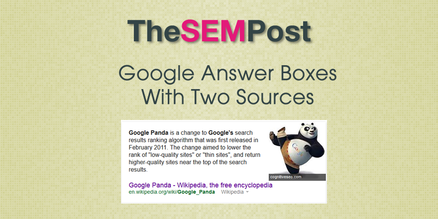 panda answer boxWhile writing my article earlier this week on Panda and Penguin, I noticed that Google is showing an answer box for Panda. But the interesting thing is it is showing two sources.