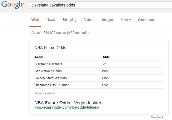 Google is starting to (attempt to) show betting odds: pic.twitter.com/LMGsf0n0GM