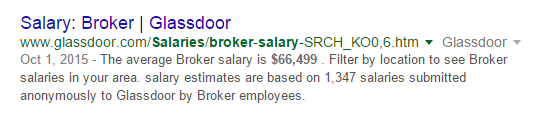 However, even though other search results also show salary information in the search results, only Glassdoor is having their snippet with the answer bolded. Because their search results are laid out the same for various professions, it might have made it easier for Google to reliably parse that information to bold the relevant part.
