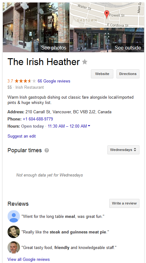 This was actually something I spotted last year, but it wasn’t displaying frequently, and it was often skewed towards the keywords included in the search. This time, Google seems to be focusing on bolding relevant keywords, often words people would use to describe businesses, that searchers might find useful when reviewing a company. All searchers now seem to be able to see it.