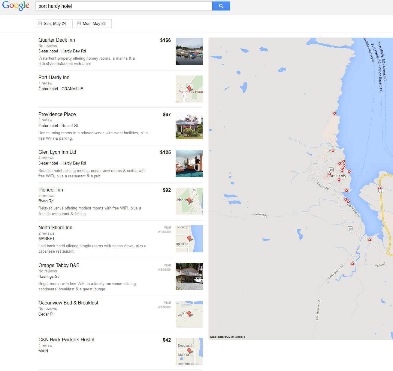 It is worth noting that for this example, there were more hotels than the three listed, including others that did have pricing displayed. So with was a decision on Google’s end to display “visit website” rather than a pricing despite there being more options available.