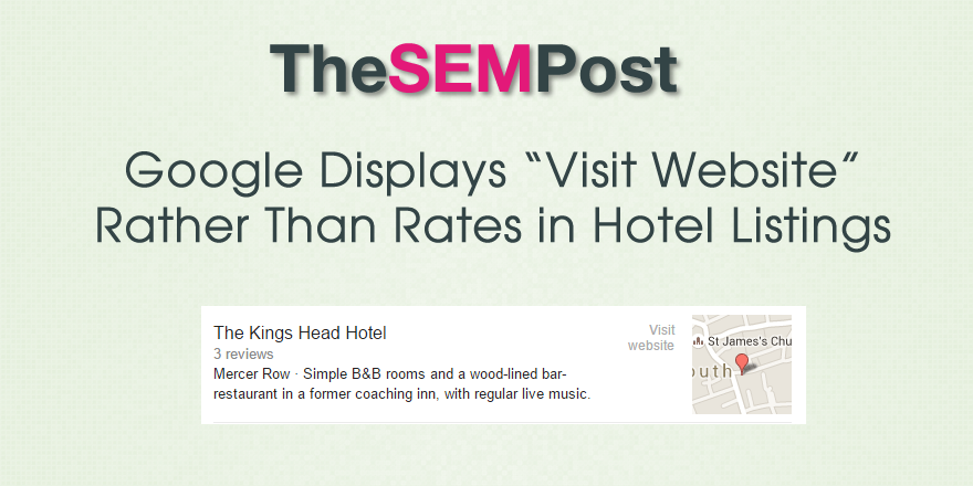 I noticed something unusual when doing a search. For some hotels, Google does not display a listed price for the hotel, but instead changed the price to a “visit website” link.