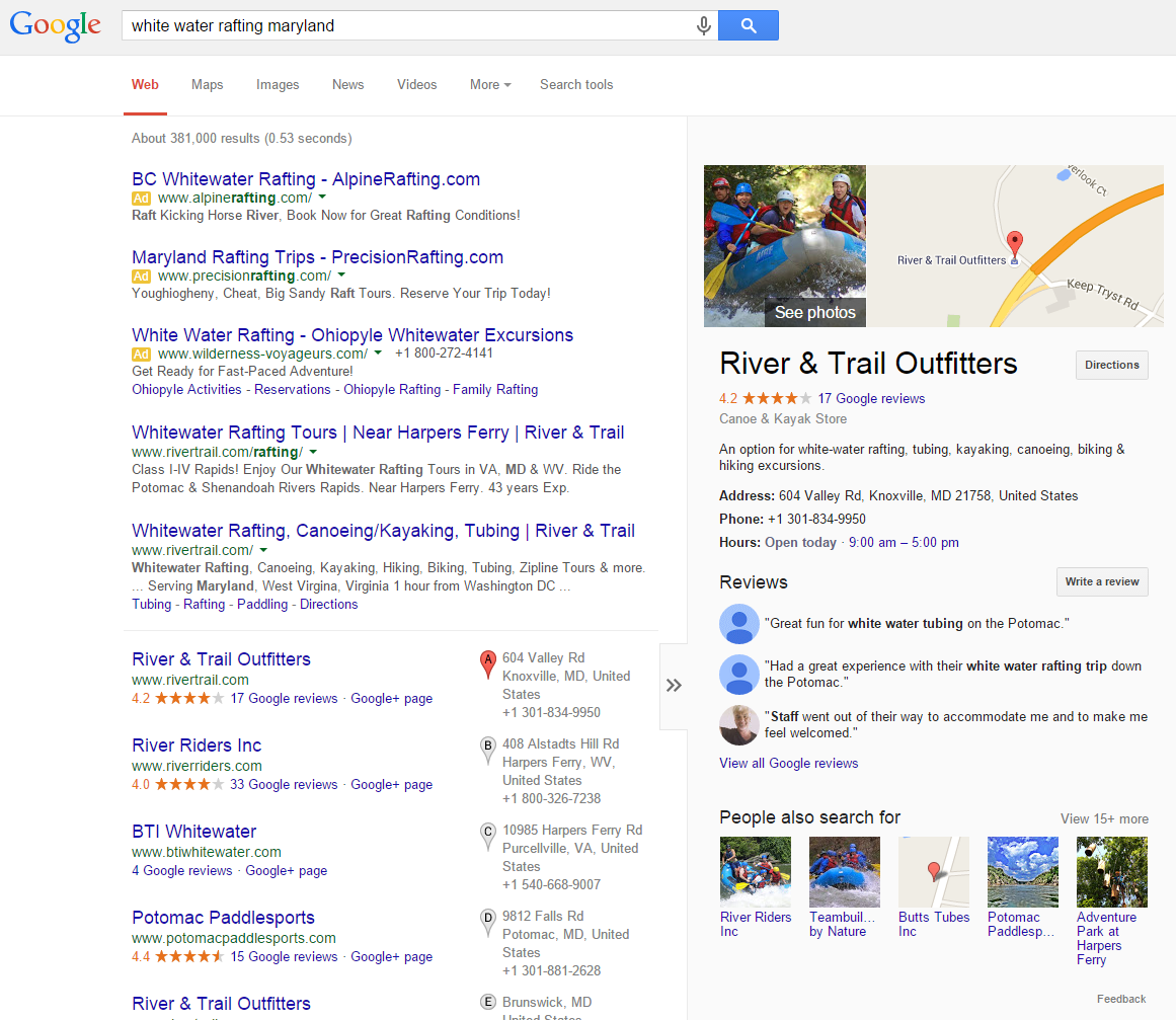 It also makes it even more important for businesses to ensure the information is up to date, as you can see from the third listing for BTI Whitewater, the resulting Google+ page leaves a lot to be desired. It could be easily rectified through Google My Business to make it more enticing.