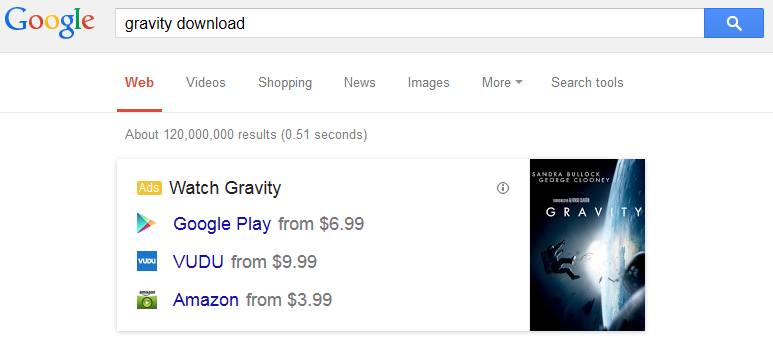 But because these ads are showing up very prominently for searches that tends to be related to piracy, this could also be part of Google’s efforts to appease the movie industry by making it harder for sites with many DMCAs to rank well, and increase the likelihood that someone should legitimately obtain or watch a movie or tv show rather than download it illegally. It is worth noting that torrent and other types of illegal download sites dominate the search results for those types of searches.