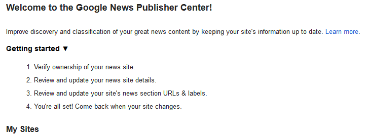 Google has launched a new Google News Publishing Center, which once you are logged into your Google Webmaster Tools account will automatically bring up a list of sites for users to submit and then leads you through a series of questions to see whether or not you meet the Google News requirements.