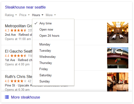 I'm seeing pricing & hours too -> Google Local 3-Pack Results With Ratings Filter http://t.co/oiMzmTMtDn via @jenstar pic.twitter.com/pb86tMusQM