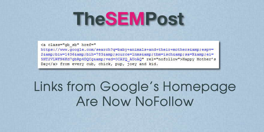 Google has now made a change and links in that section of the Google homepage are now being no followed. Since Star Wars Day, Google has added text for both remembering the end of World War II and for Mother’s Day, and both of them were nofollow links.