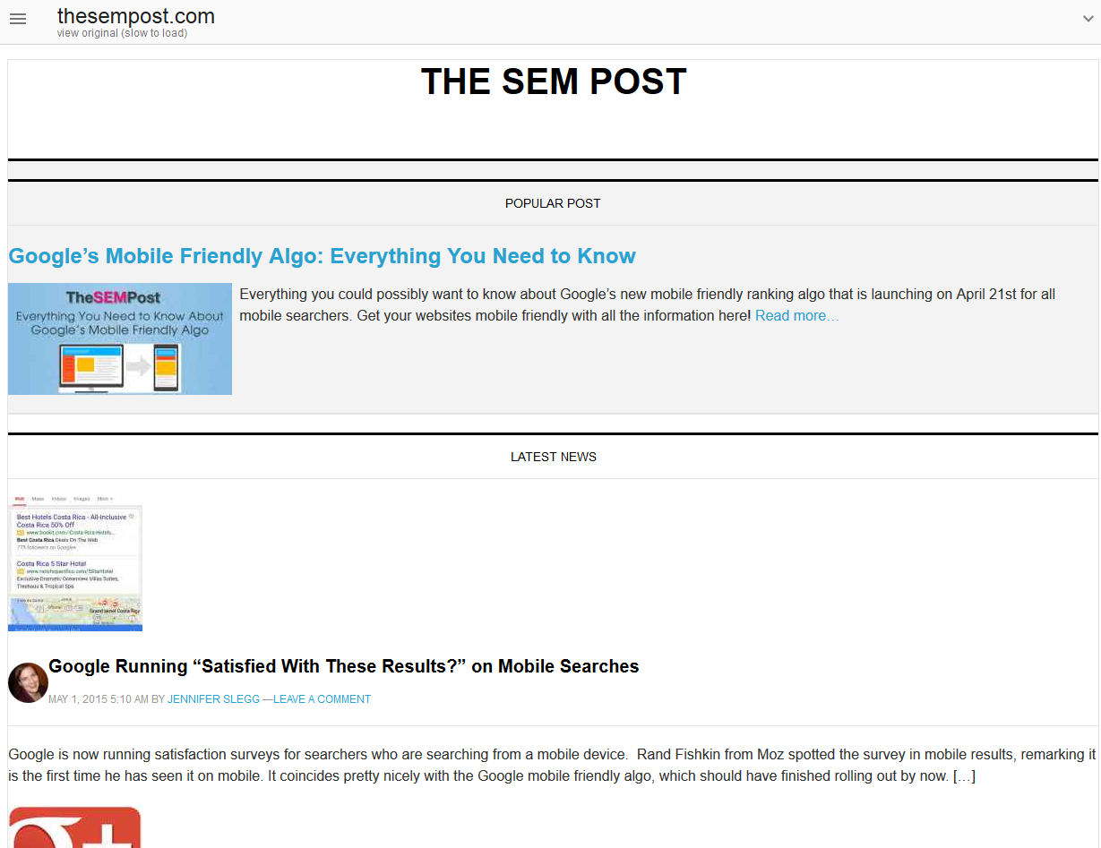Google has also released a tool to allow webmasters to see how the lighter version of their webpages will be served to these users. If you are logged into your Google Webmaster Tools account, you can submit your URL here. Here is the optimized version of the homepage for The SEM Post.