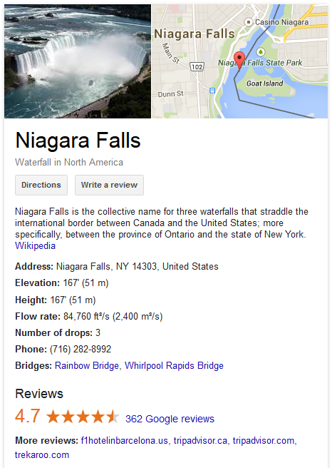 For example, this listing for Niagara Falls had multiple review sites listed including a “f1hotelinbarcelona.us” which was essentially a spam site.