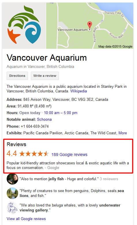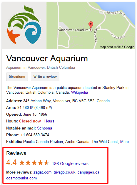 Here is the same local listing as it showed with the alternative review listings.