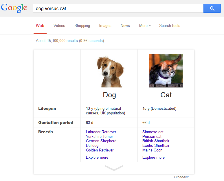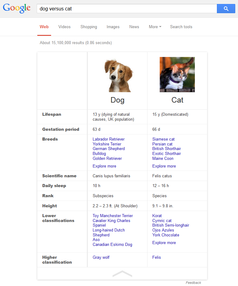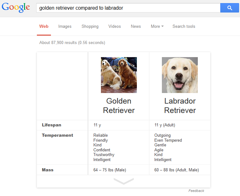 Google has also added other comparison answer boxes into the search results, although they are primarily within more commercial keyword areas, such as their mortgage comparisons and auto insurance comparisons. However, these specific ones with the answer box styling as above seem to be limited to non competitive search queries, which is good for marketers since they don’t appear to have attribution on them.