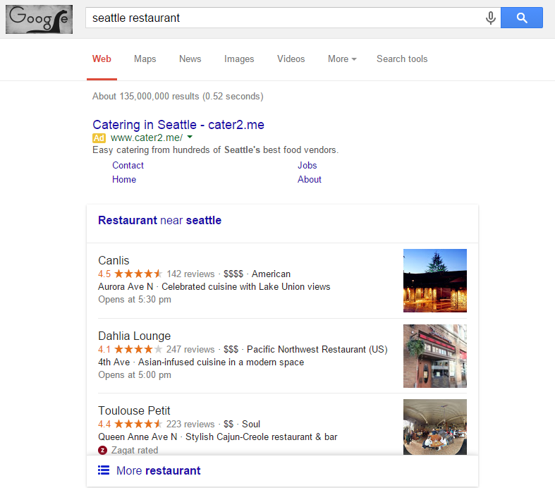 Google is running a new test where they are replacing the usual thumbnail with map marker for local restaurant results with one showing off a photo that showcases the restaurant instead. These are showing up for desktop results. It is interesting to note that they do not have an accompanying map on the right hand side of the results page like we often see for local pack results.