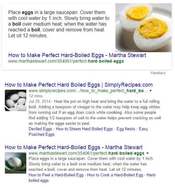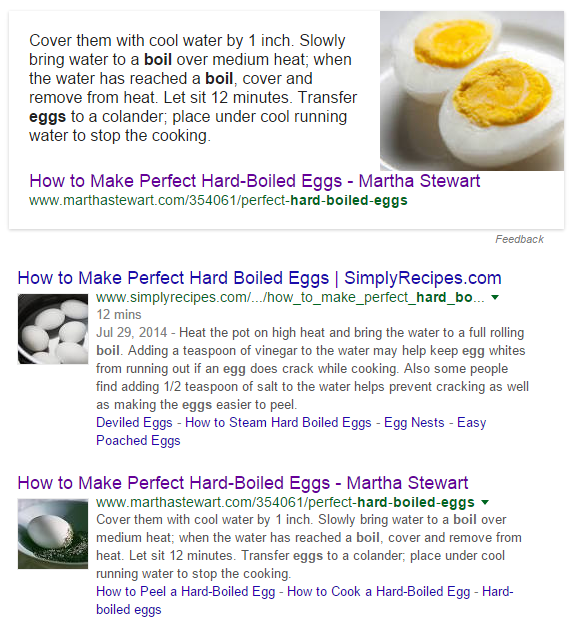 It is not showing up for all queries. For example, here is the same Martha Stewart example as above, but with only three lines – and with also a shorter featured snippet. But the Simply Recipes example remains the same.