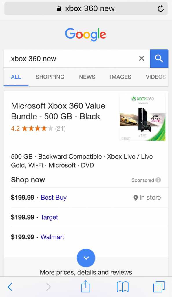 Since it appears on mobile only, not desktop, this could be an important advertising method for local businesses looking to attract those who want to buy something right now, rather than waiting a few days to have it shipped from an online purchase.