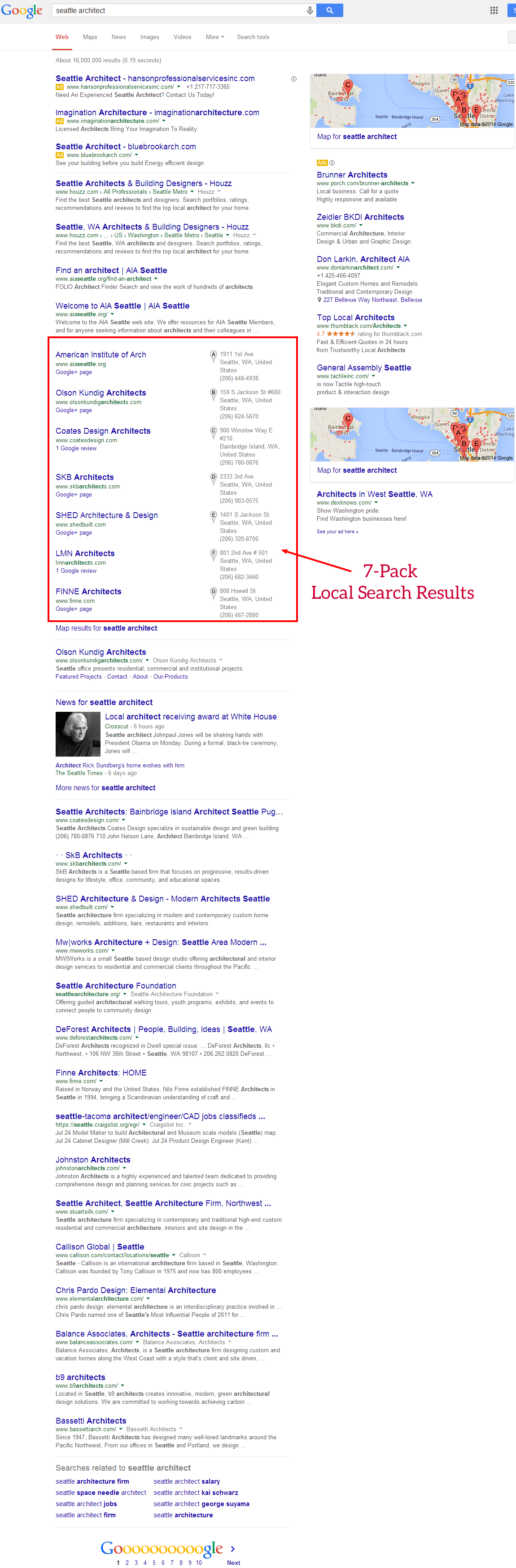 It seems to be market areas that tended to be hit more by spammers that have seen the 7-Pack reduction. On the Local Search Forum, some of the local searches others track include “DUI lawyer” and realtor/realty/real estate that all saw their pack results drop off. But it clearly shows that even more local search marketers are going to discover their packs gone today as well.
