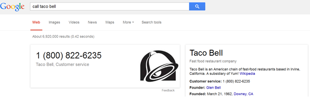 It’s good to know that if we have a problem with our tacos that we can clearly call Taco Bell customer service. Let’s just hope someone doesn’t choke on their Cheesy Double Beef Burrito, because if someone searches for “cpr instructions” to help, they’re not going to find what they need in the answer box.