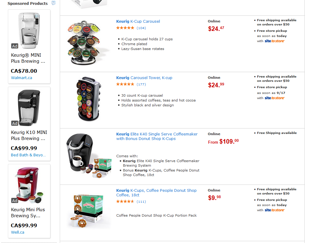 The ads appear as related products on webpages that are also displaying similar products – this is actually similar to how Amazon shows ads for “related products” on their own website.