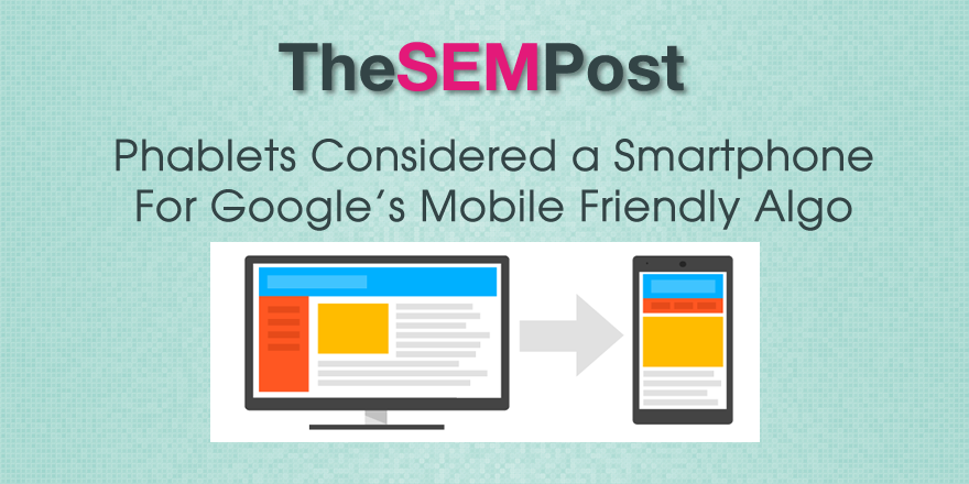 Phablets are classified as smartphones and are included in the new mobile friendly algo. The two most popular phablets are iPhone 6 Plus and the Galaxy Note.