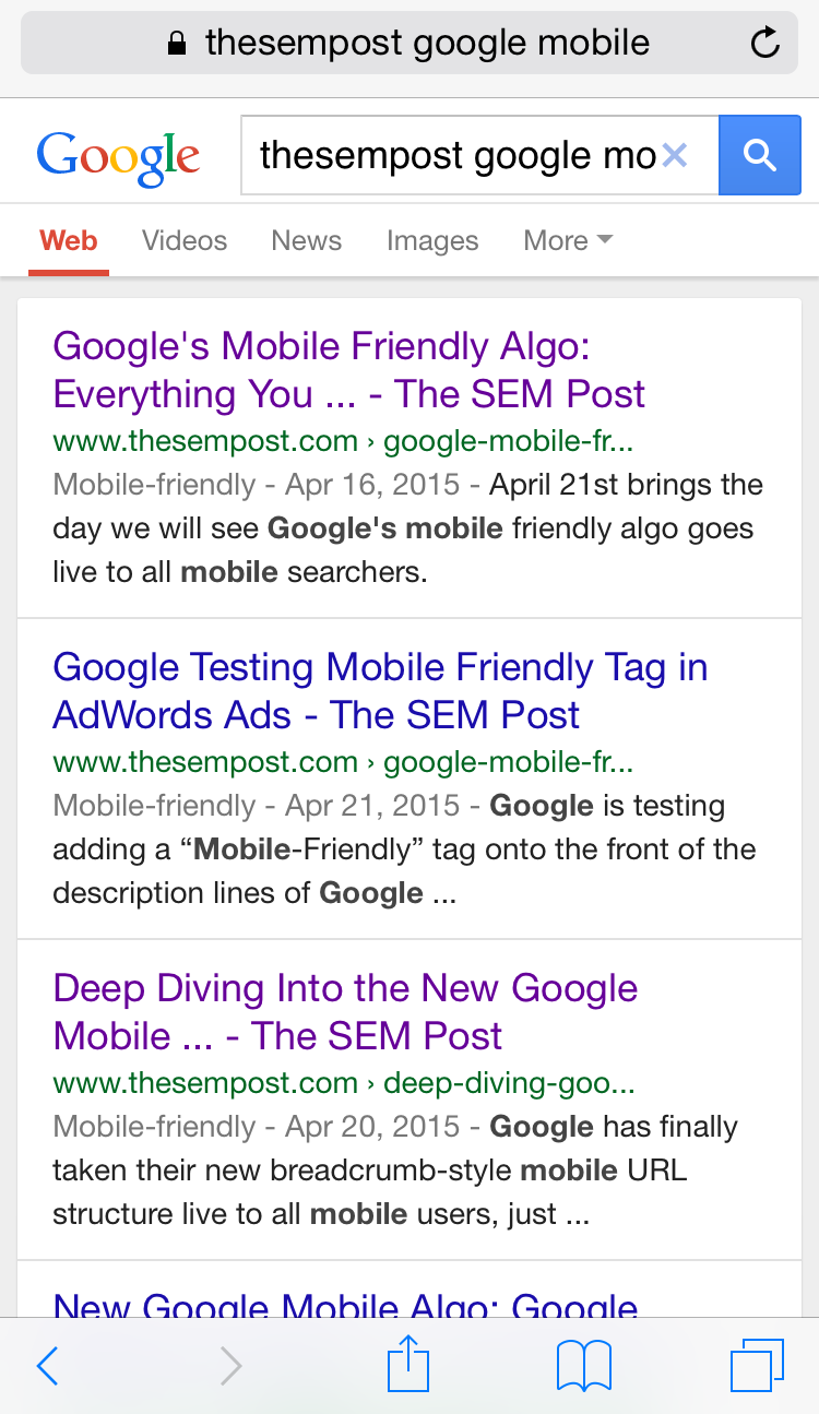 So if you are currently utilizing schema for these types of features, you will need to decide whether it is more important to have the “Mobile-friendly” tag or potentially have it removed for pagination, app links or video thumbnails. If you prefer to have the mobile friendly notation, you should remove the markup for the other types of rich snippets that would override it.