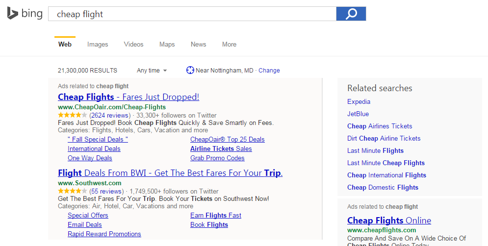 Bing Ads is testing a new feature in ads that appear above the Bing search results, displaying related categories for the ad. These are officially called “Smart Annotations”. The category listings appear between the single line of ad text and the site links. The categories cannot be clicked on, and seem to be there for […]