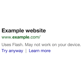 Google Adds Warning in Mobile Search Results for Flash Sites