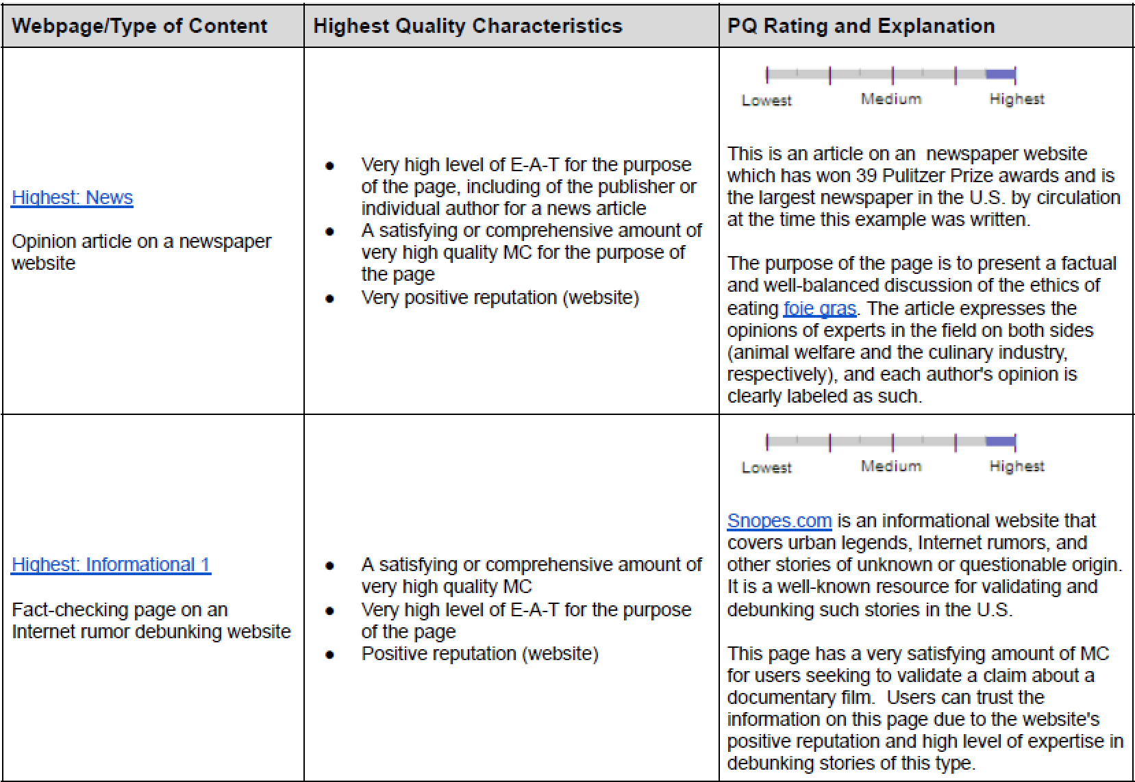 A High Level of Expertise/Authoratativeness/Trustworthiness (E-A-T)