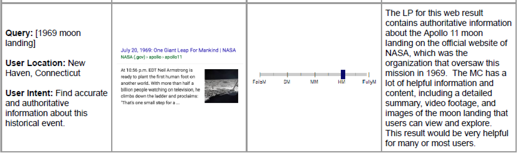 - Pages which directly contradict well established historical facts (e.g., unsubstantiated conspiracy theories), unless the query clearly indicates the user is seeking an alternative viewpoint .