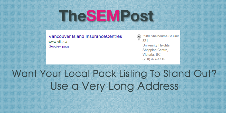 While not everyone includes the shopping center part in the address of business listings, local search marketers might want to consider adding it, so their listings can stand out as well.